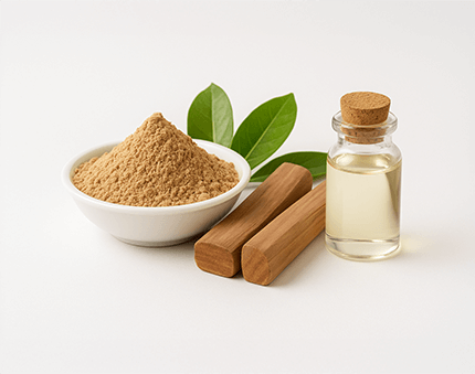 Sandalore is a synthetic fragrance that mimics sandalwood and works for hair by stimulating an olfactory receptor (OR2AT4) in hair follicles to prolong the hair growth phase and reduce hair loss