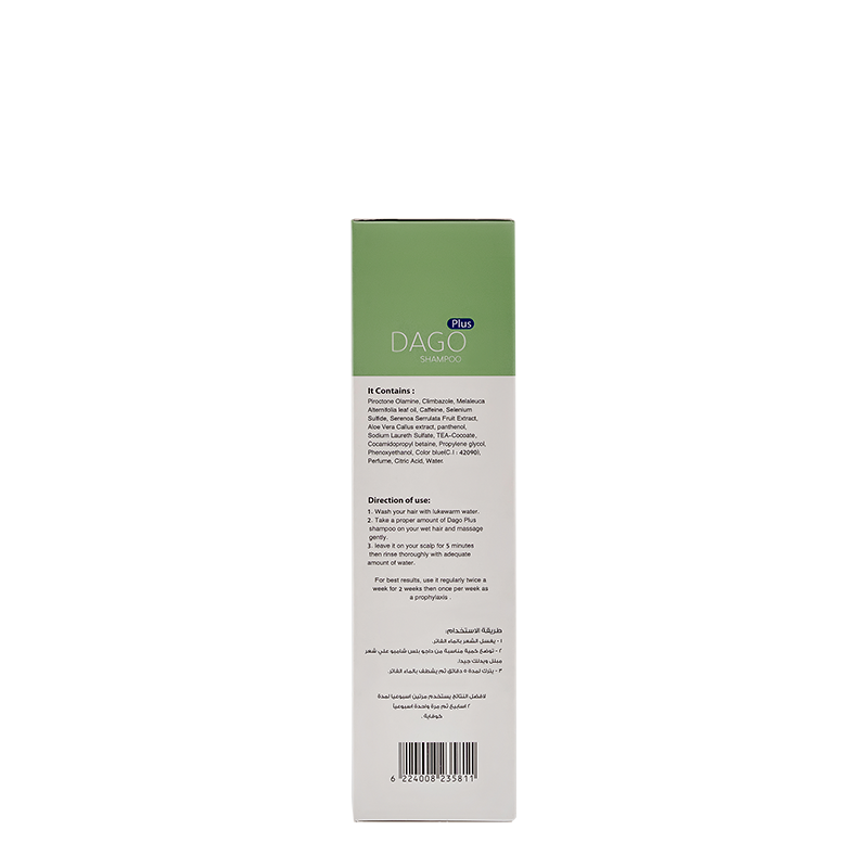 Dago Plus 5+1 Shampoo offers a Powerful Solution for Dandruff -Whether Dry or Oily , With Its Advanced CPS Complex with Selenium Sulfate , This Unique Formula Helps Restore Balance Sebum Production , Reduce Flakes , and Leave Your Hair Clean , Healthy All Without Causing Dryness.